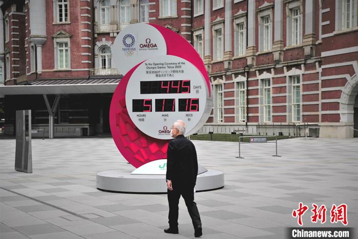 当地时间5月4日,行人走过日本东京车站附近的奥运倒计时电子屏。当天,日本首相安倍晋三在新冠病毒感染症对策总部会议上宣布,以全国为对象的“紧急事态宣言”期限延长至5月31日。 中新社记者 吕少威 摄